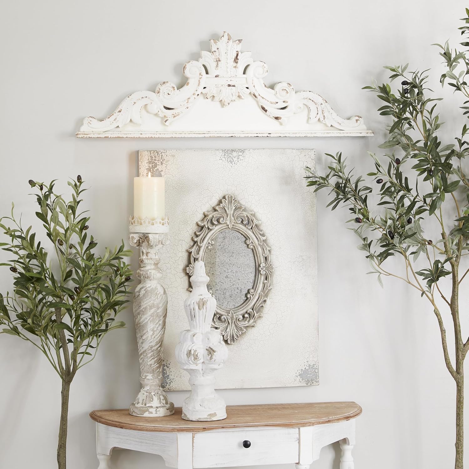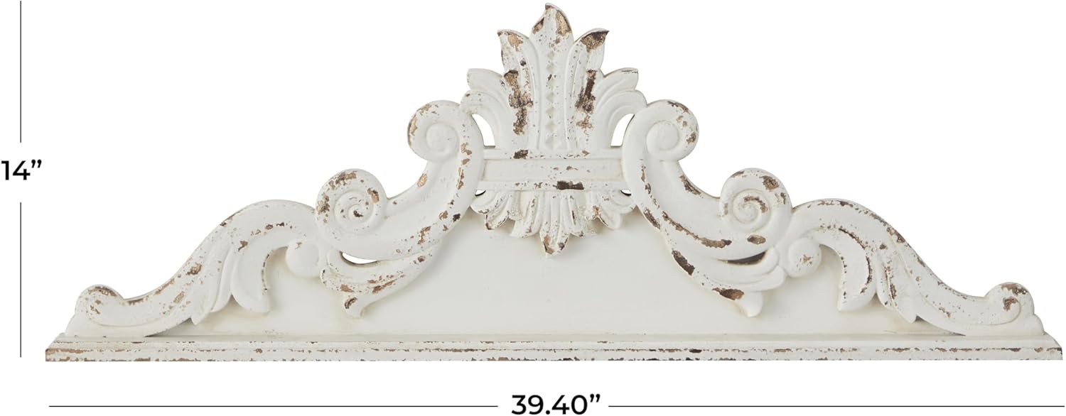 Introducing the exquisite Wood Floral Home Wall Decor – a stunning Carved Arabesque Wall Sculpture that will add a touch of elegance and charm to your living space. This beautiful piece of Wall Art measures 39″ x 3″ x 14″ and comes in a classic White finish that will effortlessly complement any decor style.